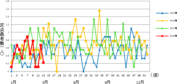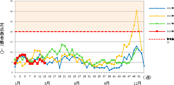 インフルエンザ゙定点 市内 15医療機関(小児科9&内科6)