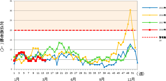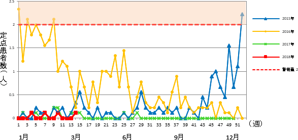 インフルエンザ゙定点 市内 15医療機関(小児科9&内科6)
