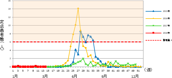 平成30年 第14週 / 5類感染症 定点医療機関週報報告の対象疾患の報告数の推移