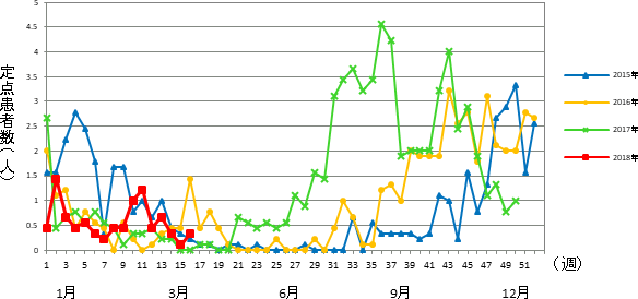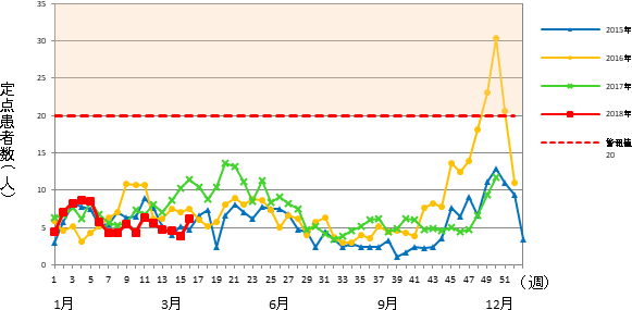 平成30年 第16週 / 5類感染症 定点医療機関週報報告の対象疾患の報告数の推移
