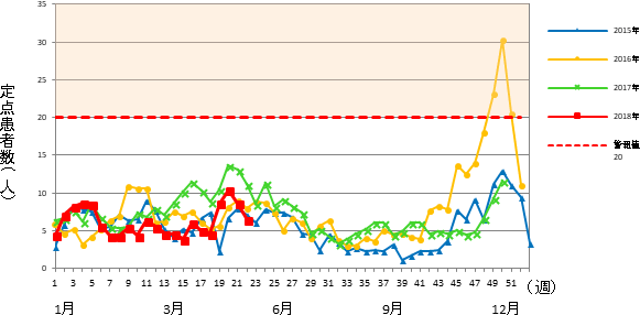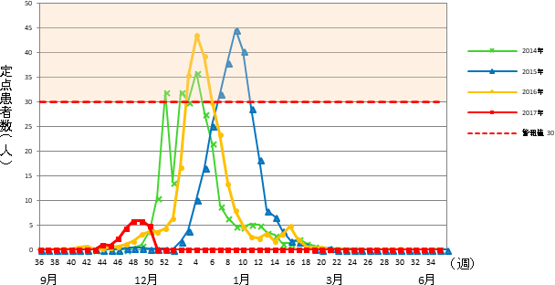 インフルエンザ゙定点 市内 15医療機関(小児科9&内科6)