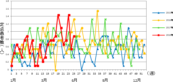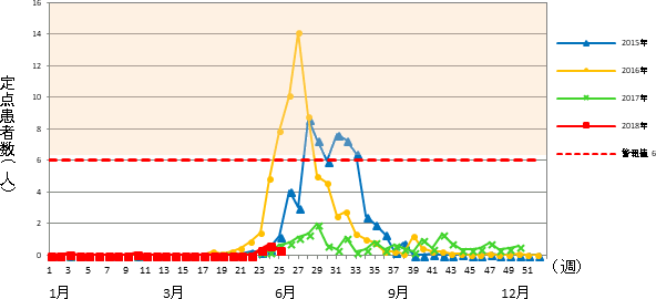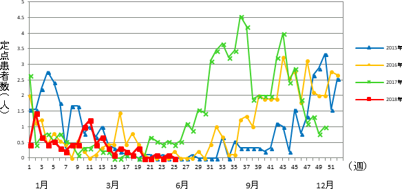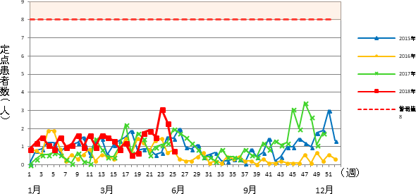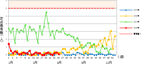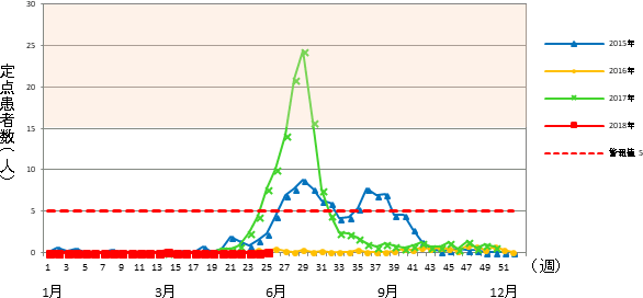 平成30年 第25週 / 5類感染症 定点医療機関週報報告の対象疾患の報告数の推移