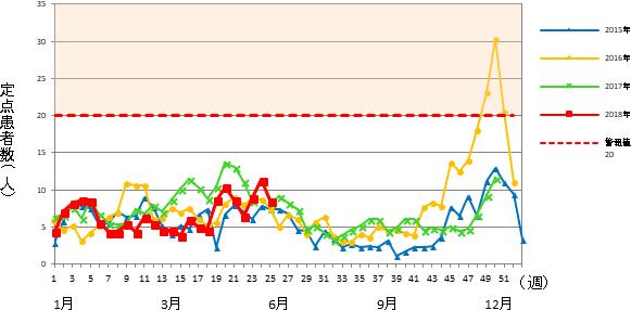 インフルエンザ゙定点 市内 15医療機関(小児科9&内科6)