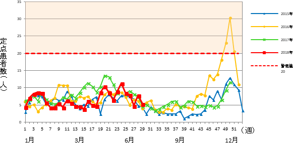 インフルエンザ゙定点 市内 15医療機関(小児科9&内科6)