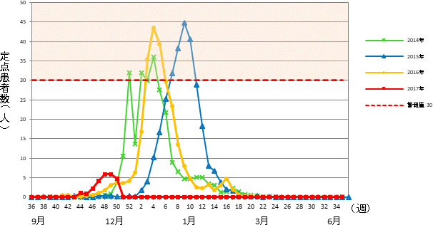 インフルエンザ゙定点 市内 15医療機関(小児科9&内科6)
