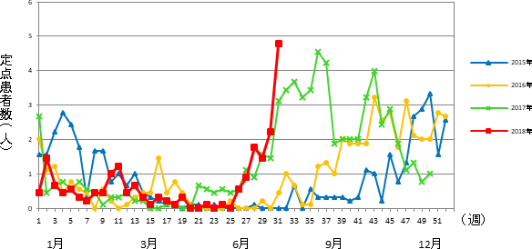 平成30年 第31週 / 5類感染症 定点医療機関週報報告の対象疾患の報告数の推移