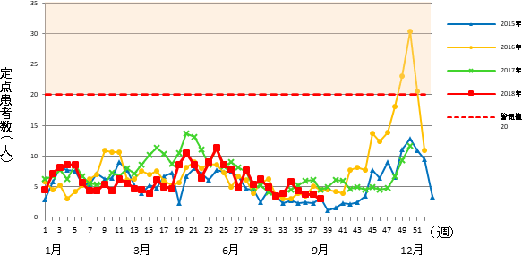 インフルエンザ゙定点 市内 15医療機関(小児科9&内科6)