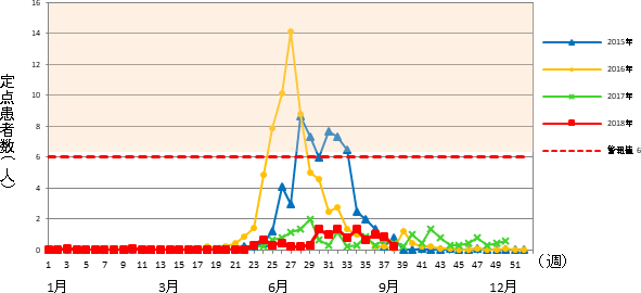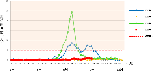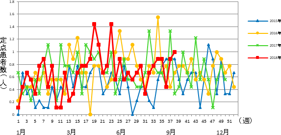 平成30年 第38週 / 5類感染症 定点医療機関週報報告の対象疾患の報告数の推移