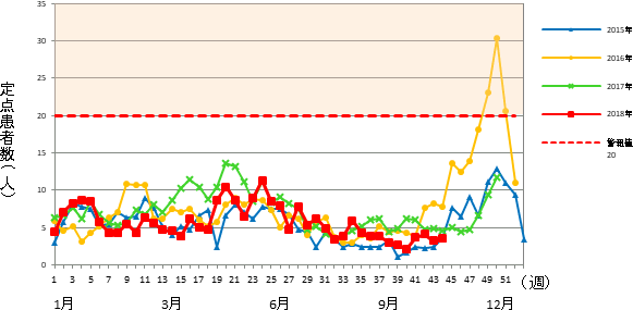 平成30年 第44週 / 5類感染症 定点医療機関週報報告の対象疾患の報告数の推移