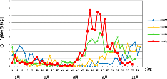 平成30年 第49週 / 5類感染症 定点医療機関週報報告の対象疾患の報告数の推移