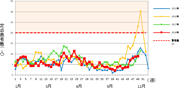 インフルエンザ゙定点 市内 15医療機関(小児科9&内科6)