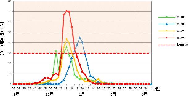 インフルエンザ゙定点 市内 15医療機関(小児科9&内科6)