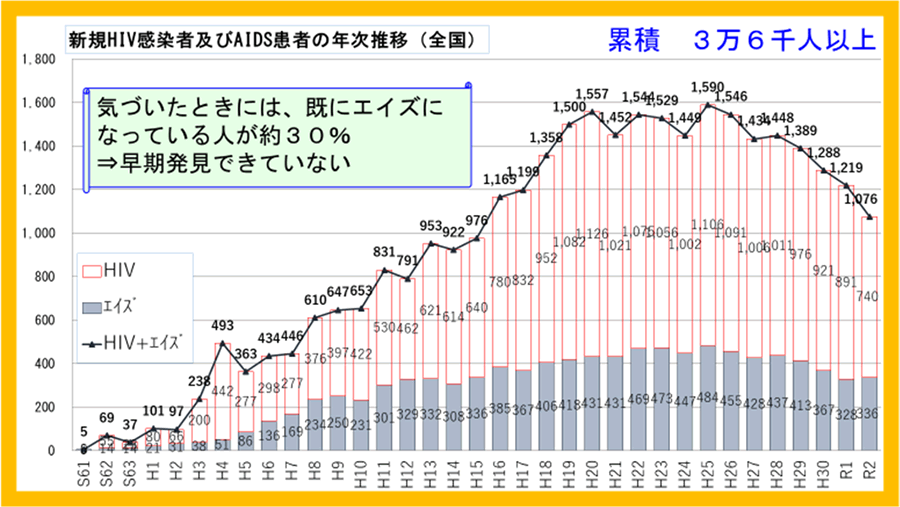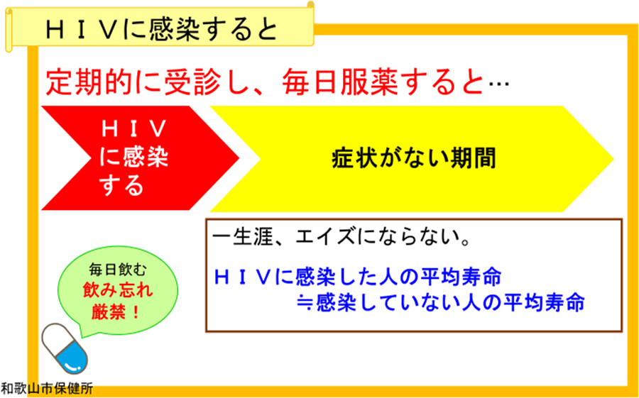 HIV感染症は、医療の進歩により、早期に発見し適切な治療を受ければ、エイズを発症することなくこれまで通りの社会生活を営み、他者にも感染させない状況にすることも可能となってきています。